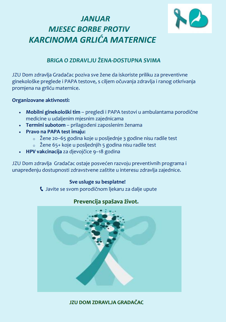 Preventivne aktivnosti JZU Doma zdravlja Gradačac povodom mjeseca borbe protiv raka grlića maternice